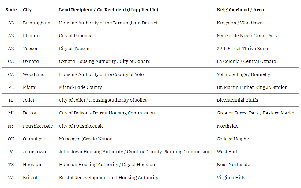 HUD awarded Choice Neighborhoods Planning Grants to the following recipients: